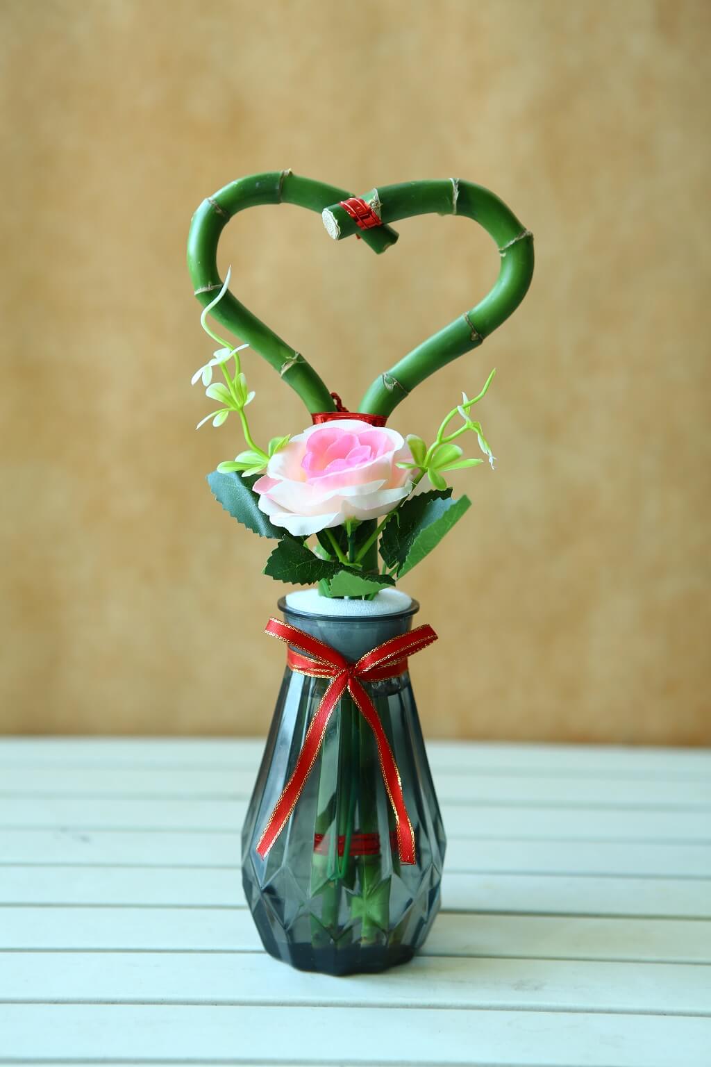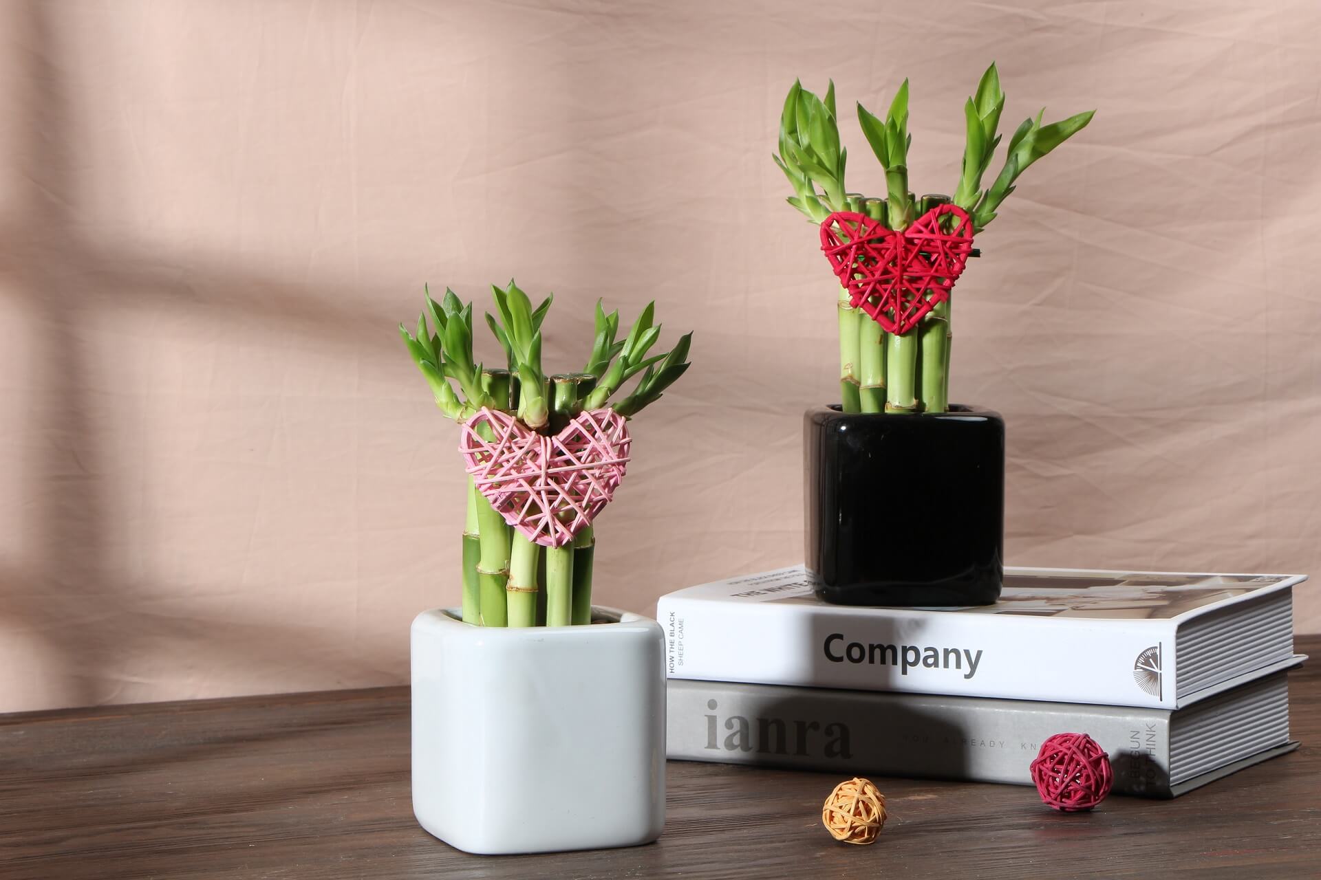 Got heart-shaped lucky bamboo as a gift. Unique design, attractive presentation. Customers were very pleased. Would love more pot color options in future.