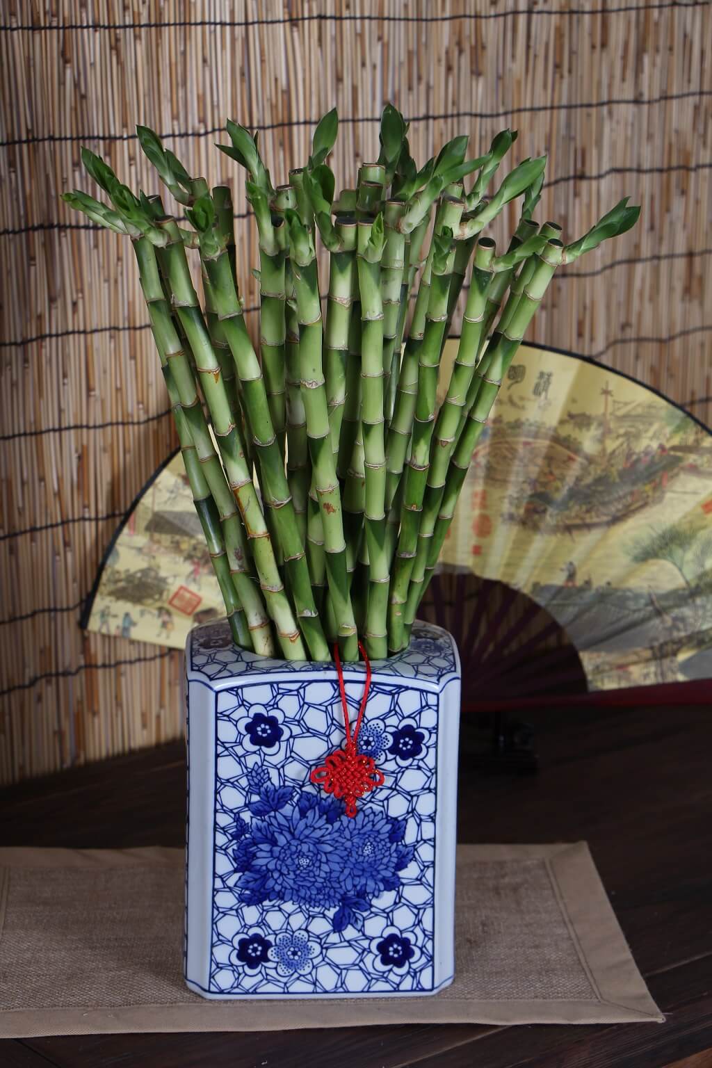 Large lucky bamboo arrangement at the entrance attracts good fortune. Looks amazing, guests always compliment it. Seller packaged it well, no damage.